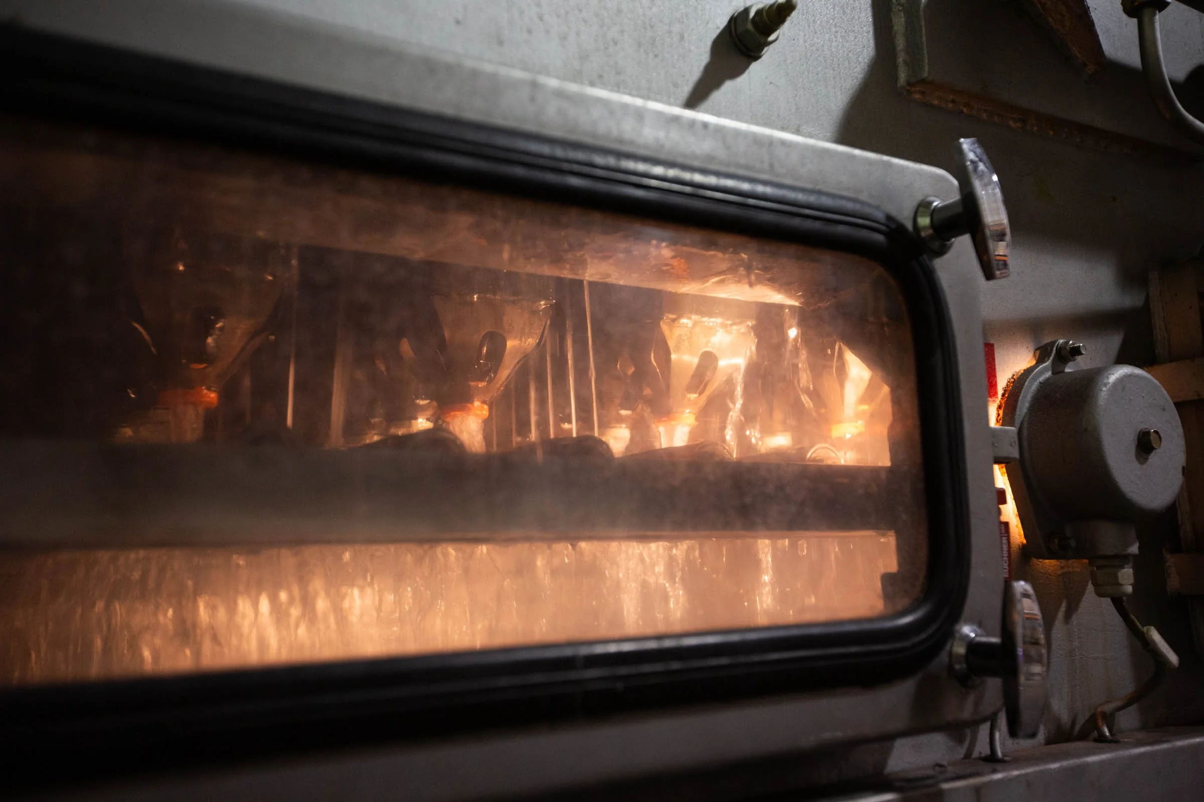 Bottles are then inspected using light to make sure they are ready for re-use.